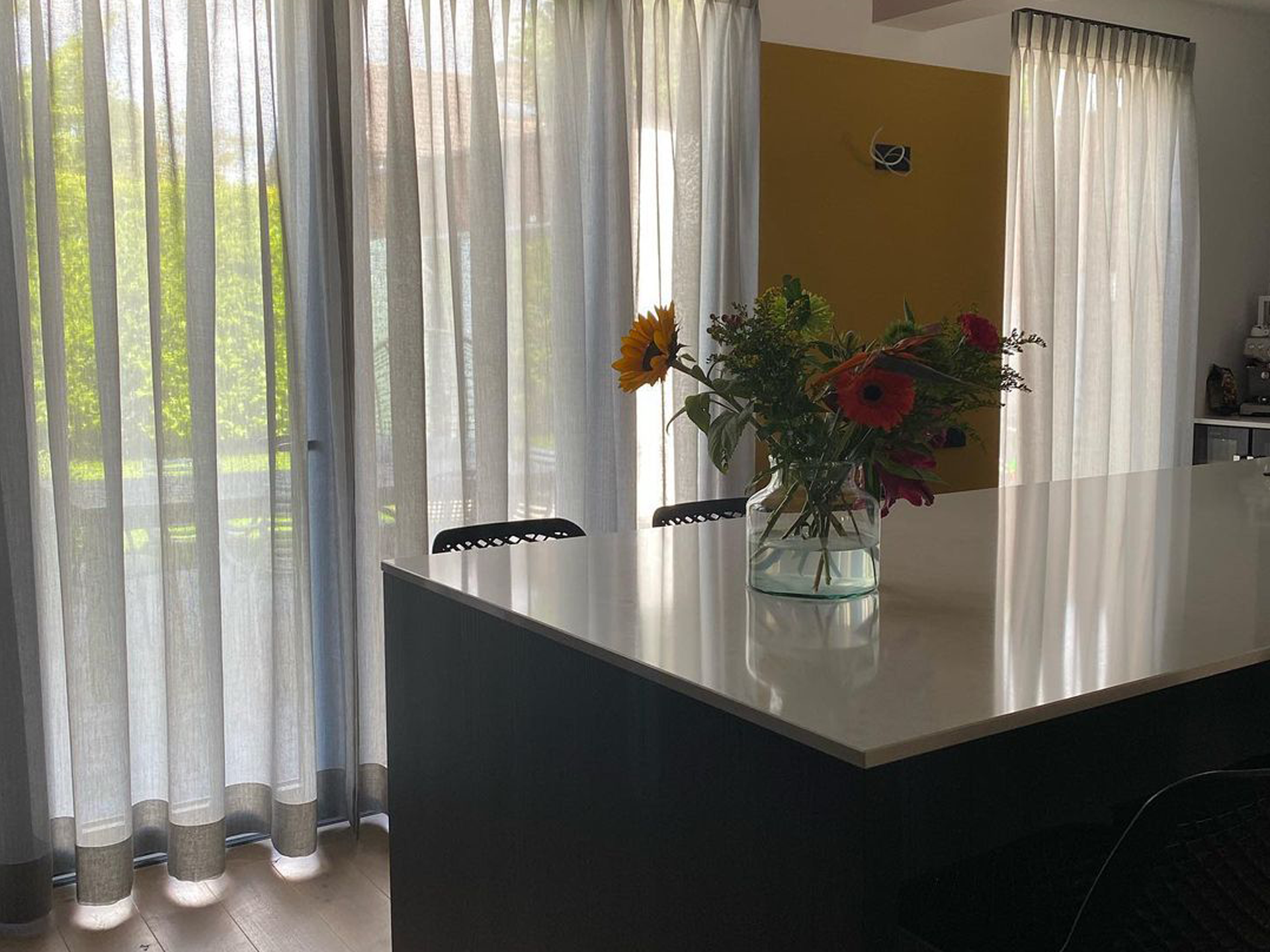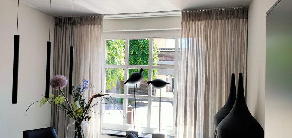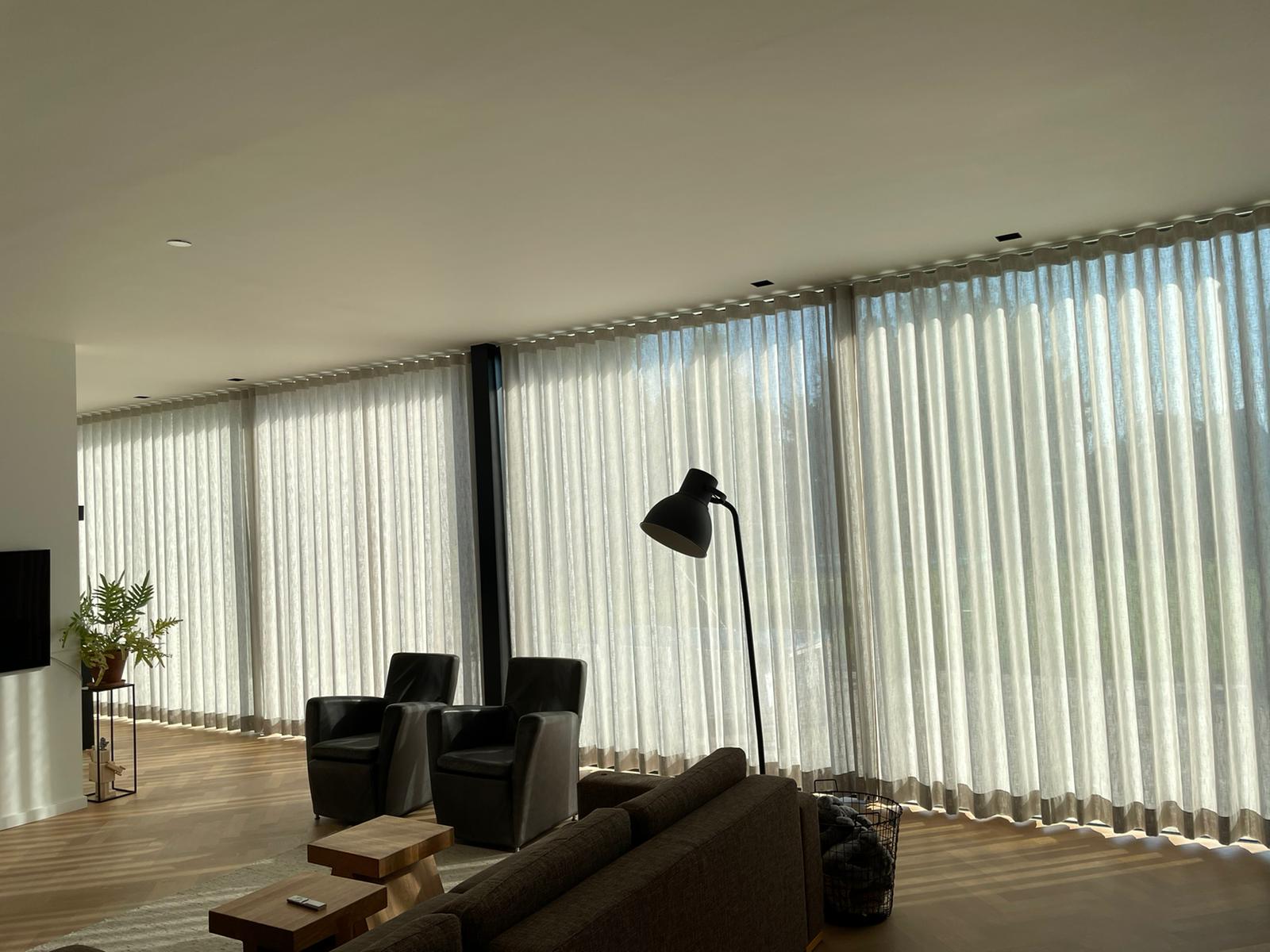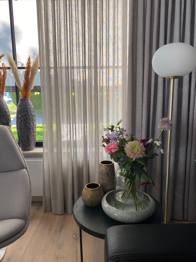Harde vloeren en stoere materialen vragen om gordijnen en andere textiele toepassingen om de akoestiek te verbeteren. Zonlicht wordt gefilterd. We selecteren geraffineerde stoffen en speciale structuren voor sfeer en warmte.